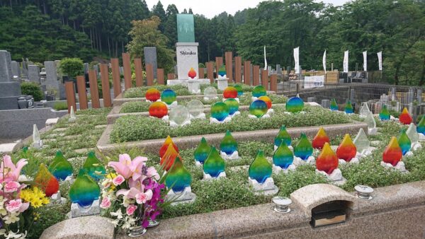 それぞれの霊園でユニークな埋葬方法をとっているのも、樹木葬の特徴。例えば、寳光寺「秋川霊園」では、ガラスを使ったお墓「光り墓」による樹木葬を行っています。100万円以内と手頃な価格で追加料金もなく、形や色、デザインなど自分らしいお墓を選ぶことが可能です。
