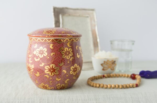 手元供養は、遺骨の全部または一部を手元に置いて保管する方法です。小型の骨壺に入れたり、遺骨を収納できるアクセサリーにしまったりと遺骨の保管方法はさまざまで、最近ではおしゃれな骨壺やミニ仏壇、遺骨を身に着けていられるペンダントなど、いろいろな手元供養アイテムが売られています。
